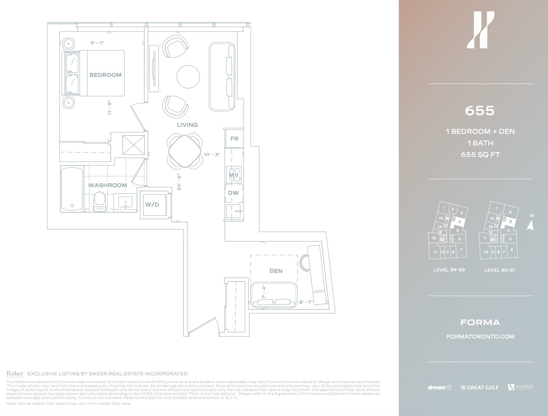2 bedroom + den / 2 bath - 5 layouts - 851 to 961 SF - Starting at $1,751,900